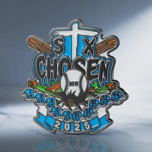 Elevate your 2026 season with the STX CHOSEN 10U trading pin. Featuring a bold "shining cross" design and intricate gear details, these custom baseball trading pins are built to be the most wanted on the field.