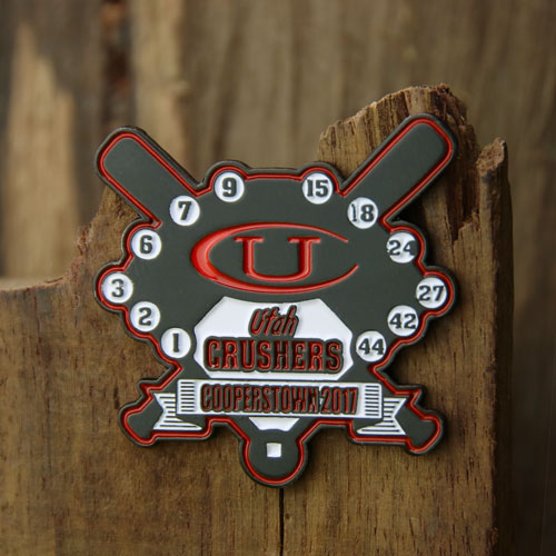 Utah Crushers Baseball is comprised of competitive 9U, 11U, 12U & 13U youth baseball teams. They believe in positive, competitive, and fun play while learning the game of baseball. The Utah Crushers Baseball Trading Pins are crafted from soft enamel, die struck with black dyed plated. Each of the Utah Crushers Baseball Trading Pins is individually poly bagged and fixed with a butterfly clutch back. GSJJ.com can provide many different Baseball trading pins and Custom trading pins at an affordable price.