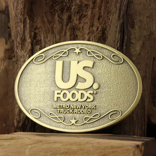 US Foods is one of America's great food companies and leading distributors servicing restaurants; healthcare, hospitality, government & educational institutions. US Foods Brass Belt Buckles are used to commemorate this event. US Foods Brass Belt Buckles are crafted by antique brass finish . Each of US Foods Brass Belt Buckles are individually PVC bagged. GS-JJ can provide many different antique belt buckles and Custom Brass belt buckles at the lowest price.