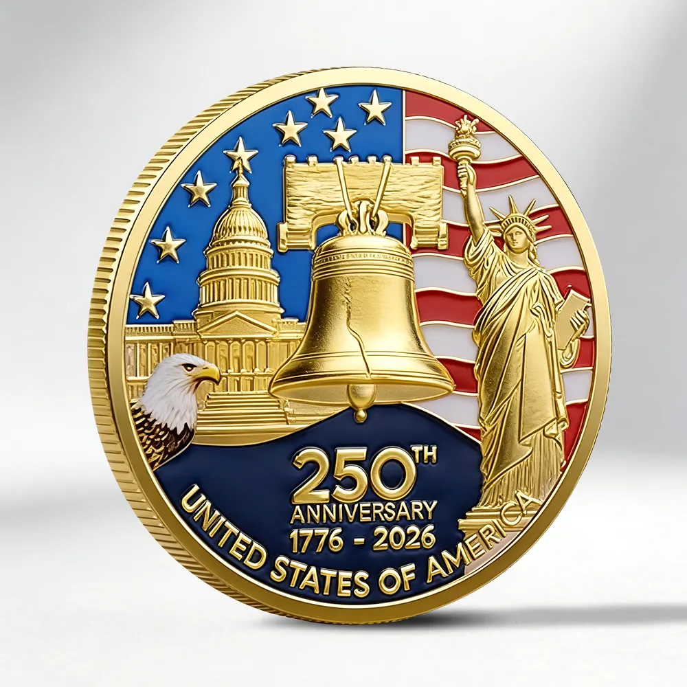 Visually reinforces the "250-year span," especially suitable for educational or display-oriented commemorative items.