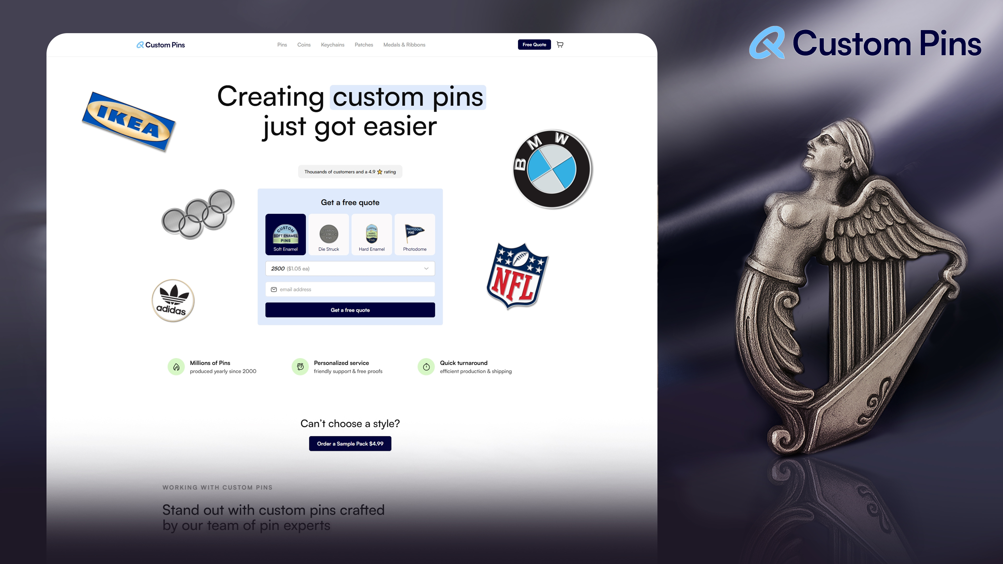 ● Pricing-There are no obvious quotes on the Custompins.com website, so you need to contact customer service for a quote.