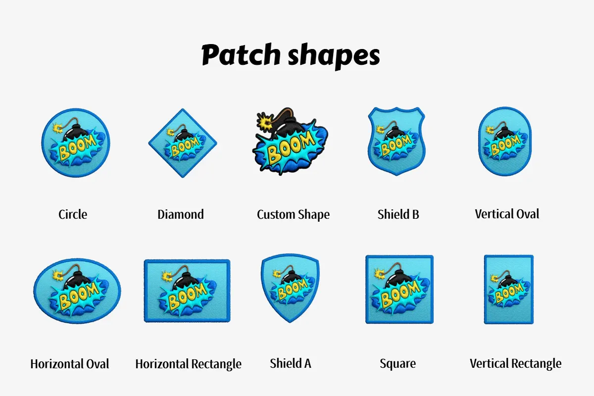 Common Design Shapes: Most patches are going to be either round, square, or shield-shaped for the purpose of manageable manufacturing and versatility. Custom shapes, not necessarily limited to animal shapes or logos, or mascots, will help distinguish a patch from other patches.