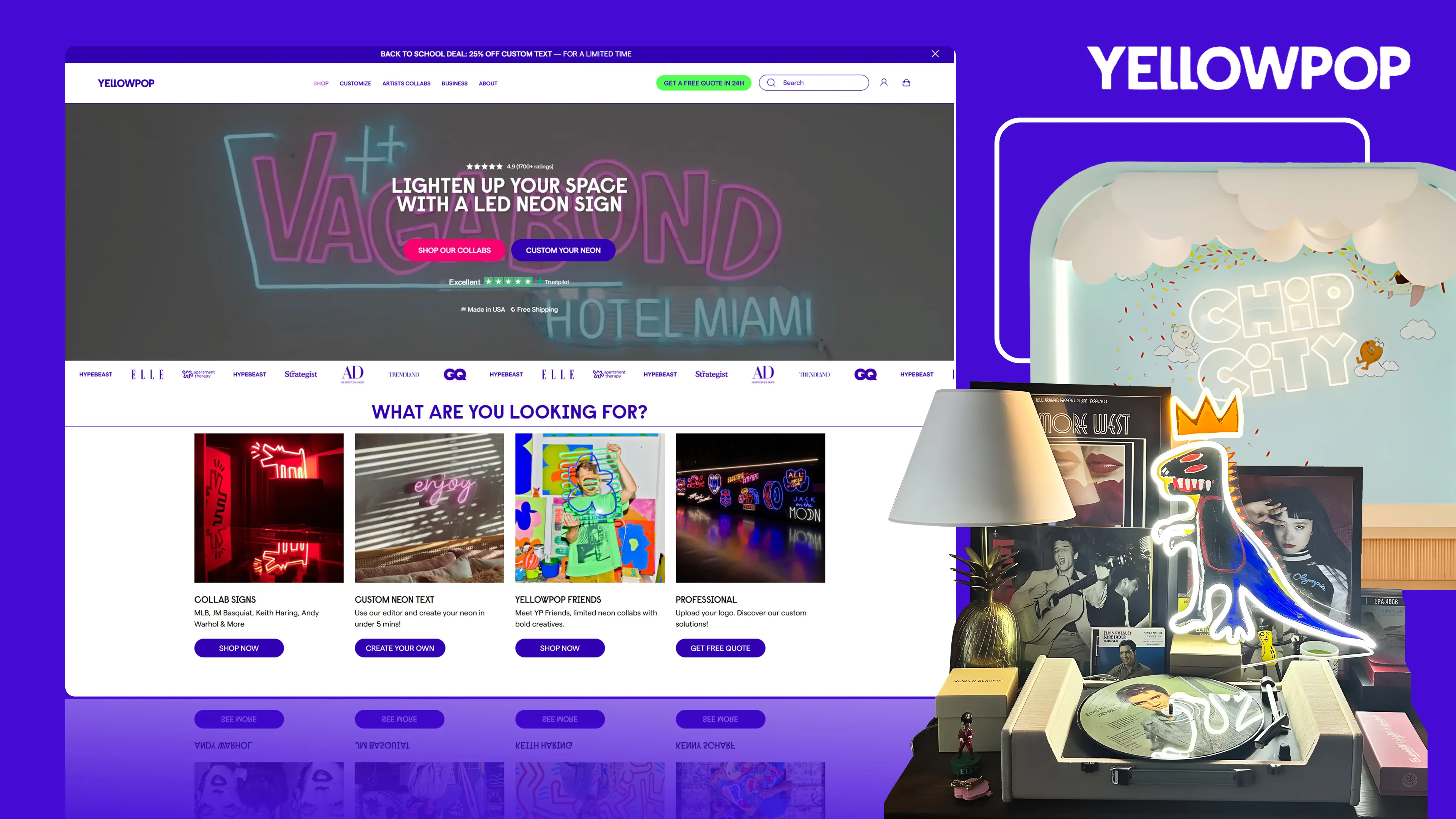 Yellowpop is a home decor brand dedicated to changing the way people decorate their spaces. Besides customizing neon signs, they also collaborate with numerous artists to sell their products. You can see a section on their website dedicated to artist collaborations.