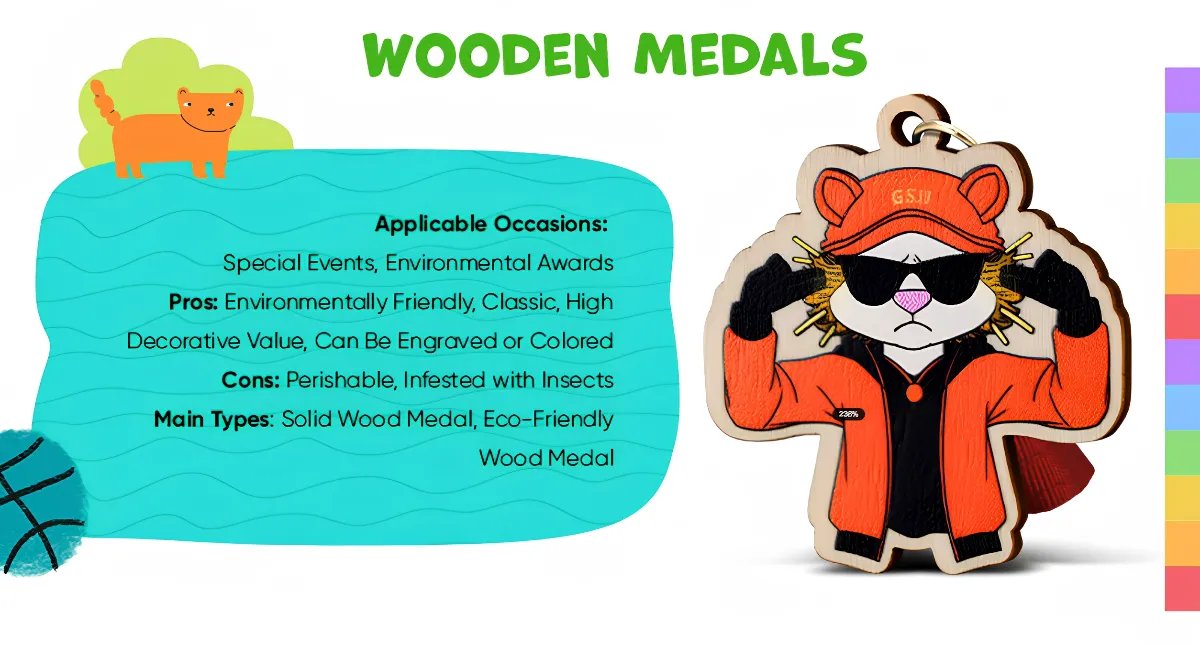 Craftsmanship: With laser engraving, UV color printing, and polishing technology, the wooden medal is simple and natural.