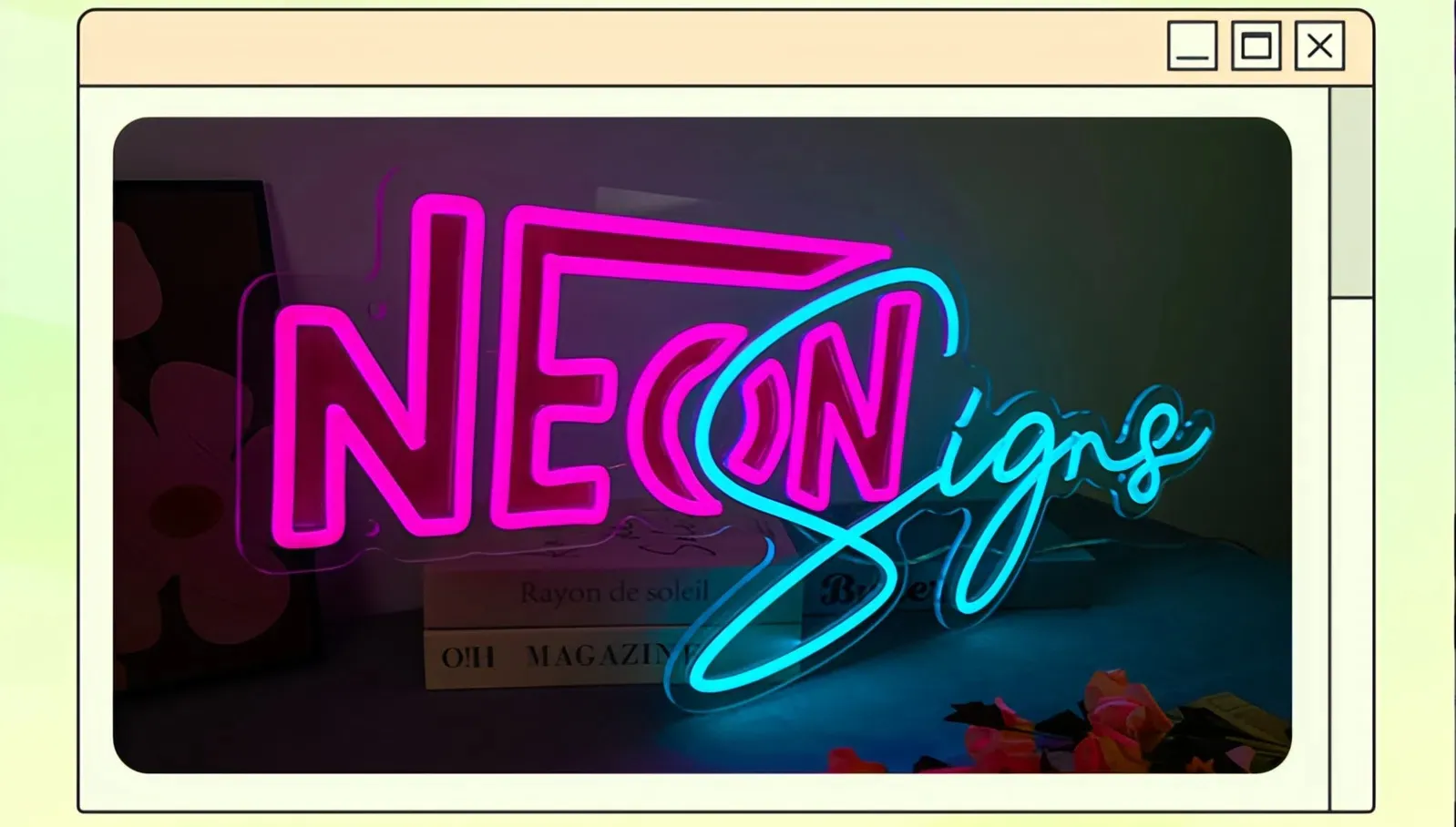 A neon sign is described as "a bright sign composed of either flexible LED neon or traditional glass neon tubes that gives off a bright glow." Most neon signs used to consist of glass tubes filled with neon gas, but now most neon signs will have LED equivalents that are more energy efficient, safer, lighter, and less brittle.