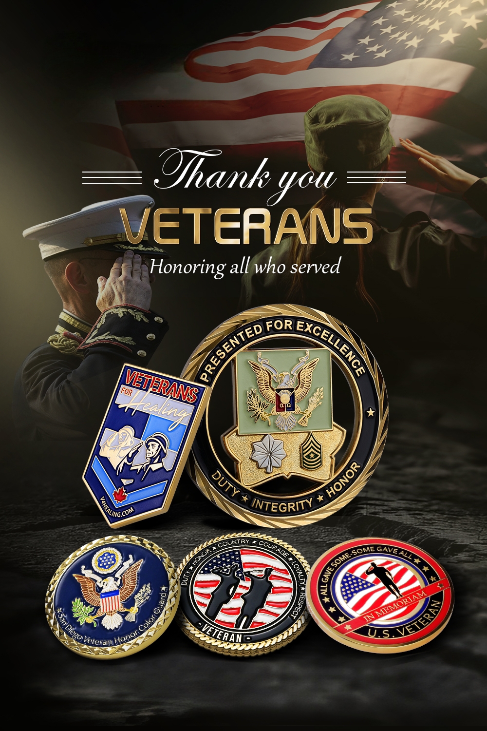 Veterans Challenge Coins are not keepsake trinket medals but lasting tokens of respect, admiration, and pride. To present a coin on Veterans Day is not so much to honor America's heroes' service but a gift that will mean something for many, many years. In a frame, in a pocket, or passed down as a family relic, these coins say volumes about bravery and sacrifice.