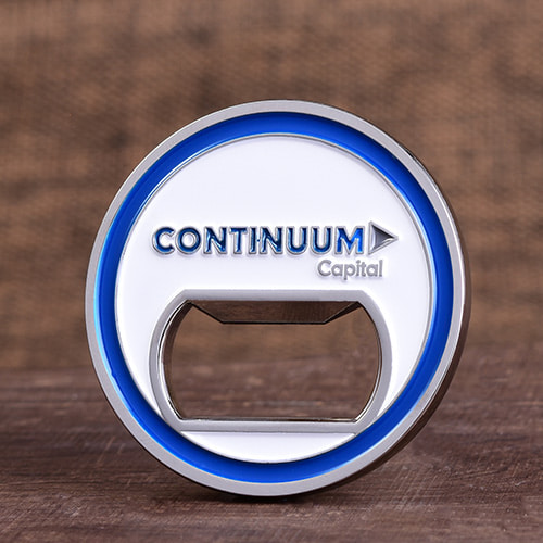 The challenge coin bottle openers are mainly white, with a blue outer circle and text, which looks very concise. The portable bottle opening design makes these personalized coins more attractive.