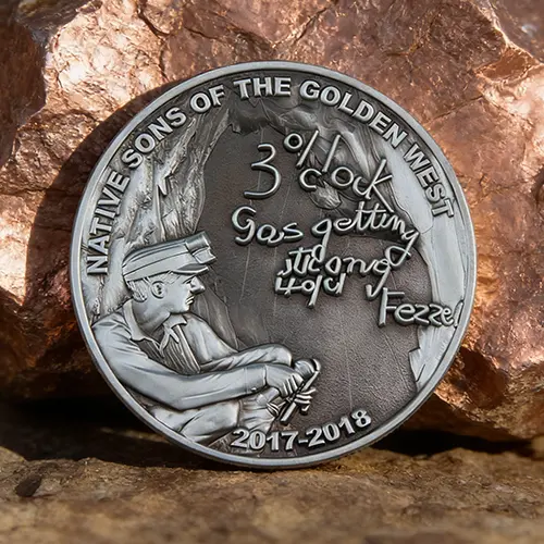 These Miner custom coins are custom antique coins with top-quality, polished antique silver. Each challenge coin comes individually PVC bagged. Our custom challenge coins are quality custom coins, and custom coins have no minimum required at GSJJ.com.