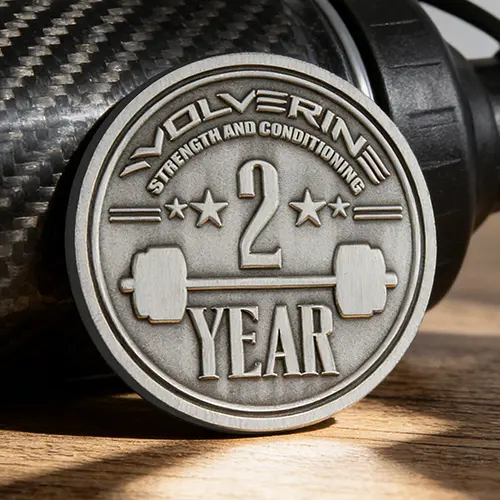 The Powerlifting custom coins are personalised coins with an antique silver finish, and each challenge coin comes with an individual PVC bag. All custom challenge coins are cheap custom coins, custom coins with no minimum, and FREE design.