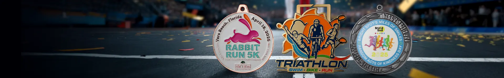 Choose any shape, size, finish, or ribbon. Perfect for running events, 5K and 10K races, triathlons, and track & field competitions that celebrate every achievement.