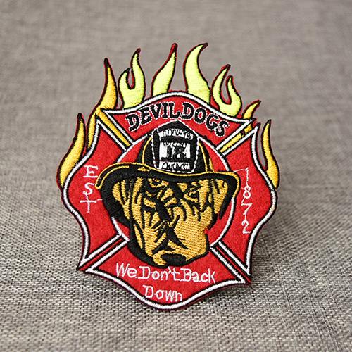 Devil Dogs Cheap Embroidered Patches use flame-shaped embroidery, look extremely dazzling and beautiful. Devil Dogs are actually another nickname for the U.S. Marine Corps. It is a U.S. Marine Corps from the First World War. Devil Dogs are described as a hound from hell because of their fighting ability. Their spiritual statement is "We Won't Back Down".