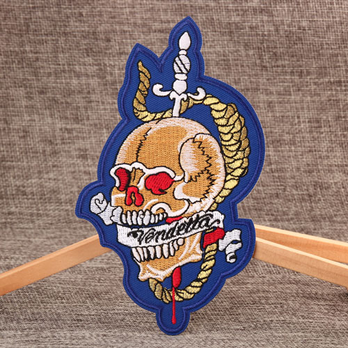 Fashion Skull Custom Patches each patch measures 3.6 inches wide (measured from the widest point) by 6 inches tall, with laser cut border and iron on backing. We provide different style backing and border for Custom Patches. And besides the usual threads we use, we also have gold and silver threads that can be designed for embroidery patches.
