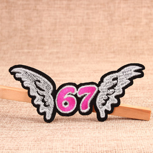 Look at our Flying 67 Custom Patches, the size is about 3.9 inches, 100% embroidery process. We are also full of fighting spirit to the perfection of Embroidered Patches. This Flying 67 Custom Patches is different from other patches. It is made of our special silk thread through our complicated process. Our Embroidered Patches are customizable.