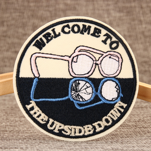 "Welcome To The Upside Down"this is our Glasses Cheap Patches.Our Glasses Cheap Patches with laser cut border and Plastic Backing.There are 2 glasses on our Glasses Cheap Patches.Order our Glasses Cheap Patches online with no minimum.we provide free shipping,free setup,free artwork for our Glasses Cheap Patches.High