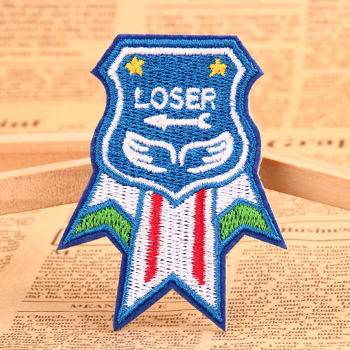 Loser Custom Patches Online each patch measures 2.2 inches wide (measured from the widest point) by 2.9 inches tall, with laser cut border and iron on backing. We provide up to 9 colors for Custom Patches Online. Each Loser Custom Patches Online are attached with poly bags for protection. Customize Loser Custom Patches Online no quantity restriction.