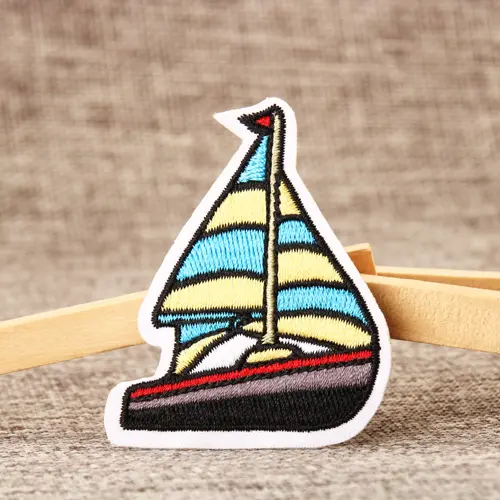 Sailboat Embroidered Patches each patch measures 1.9 inches wide (measured from the widest point) by 2.3 inches tall, with laser cut border and iron on backing. Our Sailboat Embroidered Patches have a bright color. We provide up to 9 colors for Embroidered Patches. We provide free design and free shipping for Sailboat Embroidered Patches. Send us free quote now.
