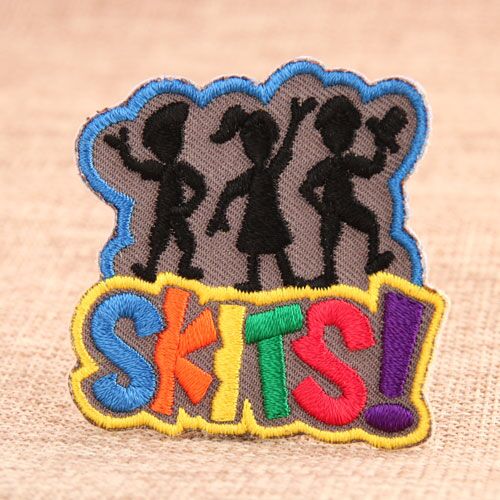 Skits means the humoristic play let. There are many famous skits just as Chaplin and Mr. Bean. Actually in the school years, there are will be extracurricular activities that students can make up the skits themselves. It could practice their ability of performance, creation and their courage. You can see our Skits Custom Patches, there are three children dressed like the character of some story and performed.