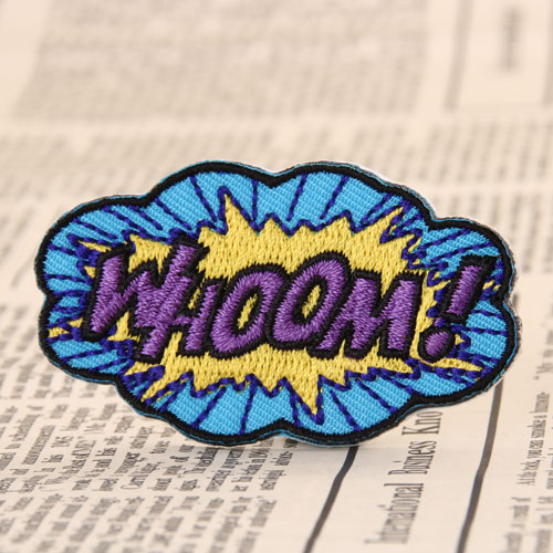 Whoom Custom Patches each patch measures 2.2 inches wide (measured from the widest point) by 1.25 inches tall, with laser cut border and iron on backing. Our Whoom Custom Patches with the blue and purple color, It looks very striking. we provide up to 9 colors for our Custom Patches. Each Custom Embroidered Patches are with poly bags for protection.