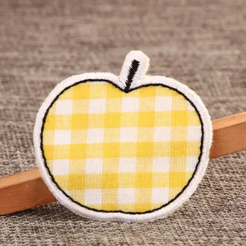 Our Yellow Apple Cheap Custom Patches is a white and yellow check, about 2 inches in size, with merrowed border and no backing. Suitable for all ages of all kinds of skirts, jackets, bags and clothing accessories. All our Custom Iron On Patches are made with the latest designs and the finest fabrics.