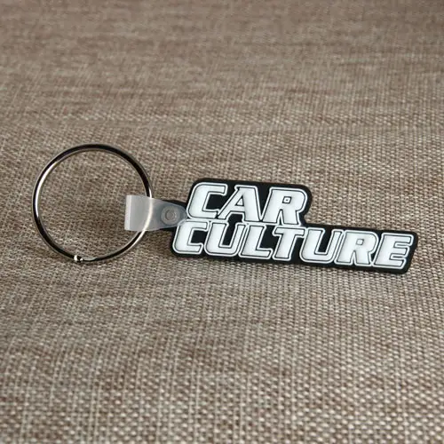 Car Culture PVC Keychain is a black and white series of key chain, which is made by 3D craft. Its background is black; protruding white font is in 3D craft. If you touch 3D part, you will feel it very smooth and soft. Car Culture PVC Keychain is a promotional product designed for the organization car culture. Car Culture PVC Keychain equipped with metal key ring, very durable, not easy to rust deformation.