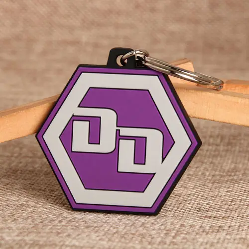DD PVC Keychain is about 2 inches, and is a logo Alphabetic polygon keychain of TrucKare & Manufacturing, INC. TrucKare Manufacturing is a truck repair shop in Saint Peters, Missouri. And there are two letters “D” on the DD PVC Keychain, which is means discovery and design. That's the philosophy of the company's truck repair company. On the back side of DD PVC Keychain, there is the information of TrucKare Company. So this soft PVC keychain is one of promotional gift of business.