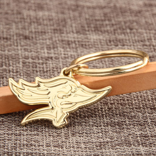 Eagle is strong and brave totem for many organization and groups, and Eagle custom keychains are popular items and gifts to hand out for friends, employees or client. You can design your own cheap custom keychains with own logo, word or image, many options in finish, shape, size or color are available. These Eagle custom keychains are minted by brass, feature with eagle head in details and brass plating and polishing to make a shiny appearance. Each custom keychain is attached with standard keyring as tag, and you can choose other tag style as you like. We can design and provide different cheap custom keychains for any occasion and event, cheap factory price and cheap custom keychains no minimum for each order here.