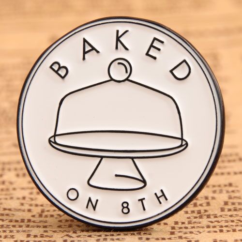 Do you like eat baked cakes and cookies? I thought the cake at Baked on 8th was delicious. The cake shop created an Enamel Pins for itself, based on its Logo. The Baked Custom Enamel Pins says” Baked on 8th”, and have a bread tray in the middle. The whole custom pins is only filled with white enamel and looks clean. The unique Baked Custom Enamel Pins is soft enamel pins, die struck with dye black finish. Each Baked Custom Enamel Pins includes a rubber cap back and are individually poly bagged. If you want to make logo pins, please come to GS-JJ.COM.
