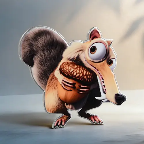 Meet the ultimate "acorn hunter"! This adorable Custom Pin features the iconic prehistoric squirrel in a frantic, wide-eyed hug with his prized nut. Sized at 2.0" with a solid 2.0 mm thickness, it combines high-quality printing with a sleek Shiny Silver finish for a premium, 3D-like pop. Secured by two rubber clutches, this playful accessory is ready to bring a touch of chaotic charm to your favorite jacket or bag.