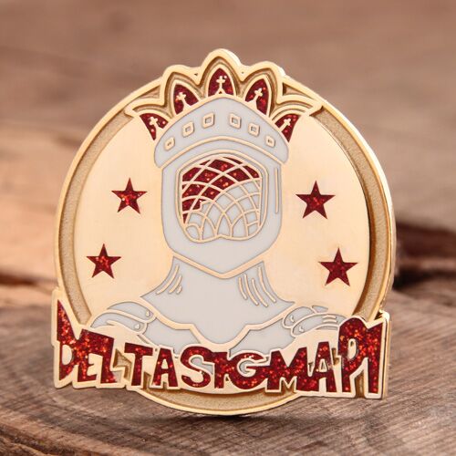 DELTA SIGMA PI custom pins are an association pin customized to us by one of the largest professional business associations in the United States. The logo of the custom pin is designed with the figure in the upper part of the logo. It belongs to hard enamel pins with sandblasting craft and glitters. The patterns and texts of DELTA SIGMA PI custom pins adopted hard enamel and sandblasting process is used to fill in the depression on the edge of the association custom enamel pins. Gold and red glitter made the lapel pin that is very dazzling. It matched a butterfly clutch on the back.