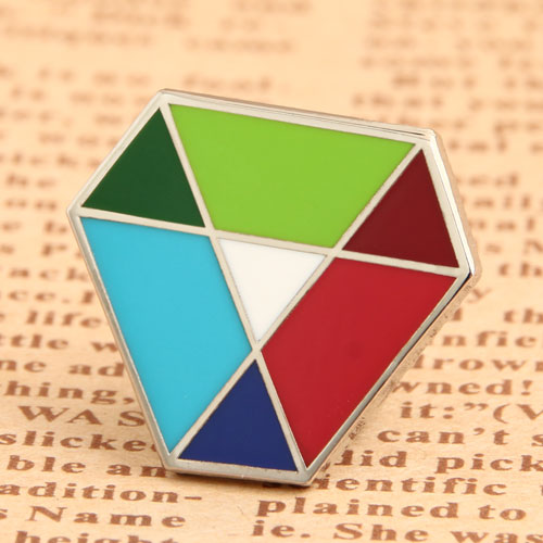 Diamond Custom Lapel Pins are produced by pin manufacturers GS-JJ. The name of the diamond refers to its shape. This custom enamel pins have six sides and two trapezoids combined to form the shape of a diamond. This unique shape allows the bow button to touch the positioning hole with a small surface area to prevent movement in one direction. Diamond Custom Lapel Pins are 0.65" Hard enamel pins with silver finish.