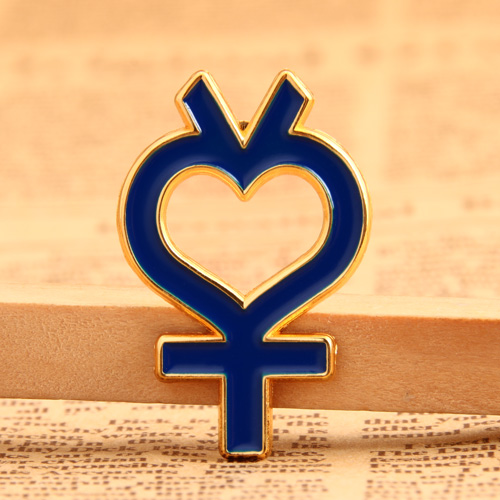 The “♀” symbol is a female symbol, contrary to male symbol-the “♂” symbol; it is said that because Cupid's bows and arrows bag shaped like the “♂” symbol, Venus, the goddess of love, often holds a small mirror shaped like the“♀” symbol, these two symbols were used as the symbols for the god of love and the goddess of love. Later, they were used to represent men and women, respectively. Our Female Symbol Lapel Pins are definitely Cool Enamel Pins. The Lapel Pins are designed according to the “♀” symbol and include some changes. We changed the simple circle of the “♀” symbol to a heart symbol with a gift bow. The changes make the Cool Enamel Pins more creative. The Lapel Pins are refined with the precise cut-out technique. The whole Female Symbol Lapel Pins is filled with beautiful indigo color with gold trim. It is a great gift to send to the girls at your evening party. Want more custom Lapel Pins? Contact GSJJ.com now!