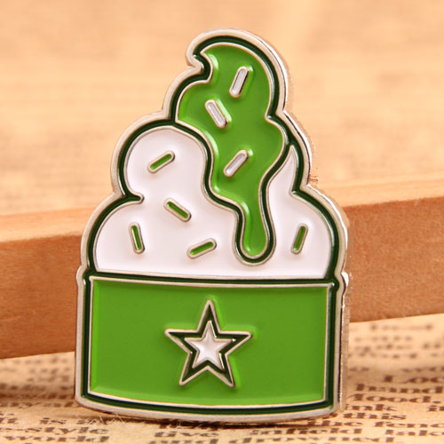 Look, what's in a box decorated with five-pointed stars? It looks more and more like my favorite ice cream. It’s a soft enamel pins with green & white enamel, and plated with silver finish. Each Funny Soft Enamel Pins comes with a butterfly clutch and is individually wrapped. If you're missing an accessory from your jacket and backpack, this soft enamel pins is your best choose. Or if you want to customize other custom pins you like, you can also contact us. We provide free design and delivery service. For more lapel Pins and baseball lapel pins, contact us or visit our website.