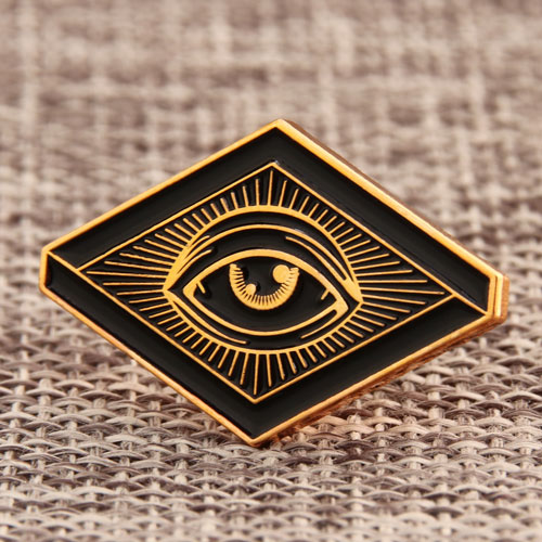 The shape of the glowing eyes custom pins is diamond and the whole of custom enamel pins is only black and gold to fill. Black is used as the background color and gold is used as a decorative color. The inside of the diamond is drawn an eye that is decorated the surrounding of eye with metal lines which like the light from the eye. From the bumpy surface of glowing eyes custom pins, it can be seen that it is made using the soft enamel process. Simple colors and patterns reflect the chic craftsmanship of the enamel pins. Dressed in a collar, hat or sleeve as a decoration, it can show your unique charm.