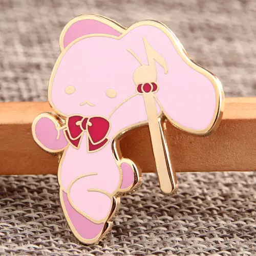 Look at the way this rabbit sings who hands up, feet up and confident. This is a rabbit singer custom pins that customized by customer for his children. The lapel pins is the hard enamel process which is mainly based on different shades of pink, polished gold metal as the color of the pins dividing line, wine red as a decorative color. Rabbit singer custom pins are live and cute that very suitable for children to use. If you need to use the cheap custom lapel pins to reward children, go to GS-JJ to customize a few. We offer the lowest price and the best quality.