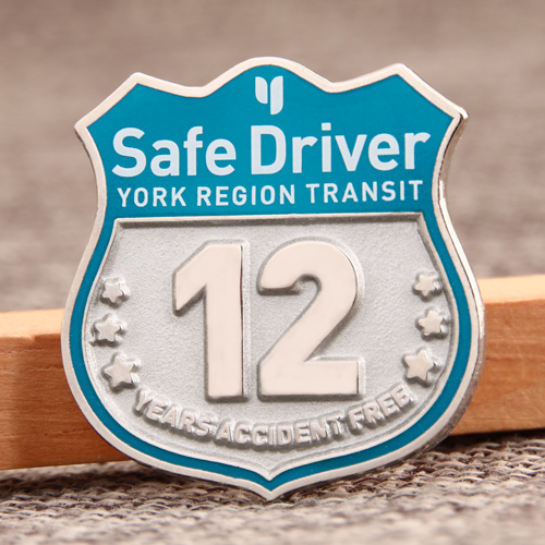 Are you a driver who follows the rules? A lot of answers will be yes. Then can you keep it for 12 years without breaking the rules? Such a person should be a phoenix. In order to encourage drivers to obey the traffic rules, here is a pin, Safe driver custom lapel pins which is a shield-shaped custom pin. This pins divided into two areas: the blue area and the silver area. The silver area is polished bright 12, its surroundings are surrounded by stars and YEAR ACCIDENT FREE. The blue area shows Safe driver and YOUK REGION TRANSIT. This is to encourage drivers who have no traffic accidents in the York area for 12 years. If you want to make the reward custom enamel pins, you can order place at our website.