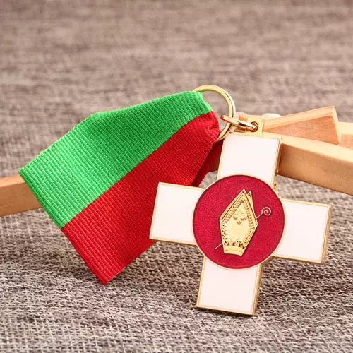 Cross Custom Medals are very delicate religious medals. They are small custom religious medals. The cross is a very common sign in religion. Cross Custom Medals are very special because there is a red shiny side in the middle. And there is a gold church with a long pin. On top of the church, there is also a classic cross. The church is decorated exquisitely. Each of the Cross Custom Medals will be matched with a safety pin on the red-green ribbon. So you can wear it on your chest. Religious medals are rare. But when high quality religious medals are designed, they usually are delicate. Choose cheap religious medals and enjoy your wonderful shopping for personalized medals at GSJJ.com.