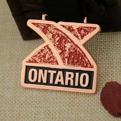 A custom copper medal for the event will be held in Ontario. Customized medals feature the X shape, and the X is painted in red enamel color. Under the X, the custom medal is printed with "Ontarion" in a black background. Give this custom medal to your best players, teams, and groups.
