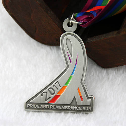 Pride and remembrance run customized medals are design as ribbon, handed fill woth five enamel color. Award and honor all the top runner with such great customized medals because of their wonderful performance. It is an emblem of honor. Great customized medals and award for your events, groups and teams.