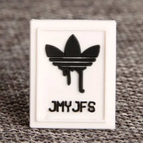 This white and black PVC patch is JMY JFS PVC Patches. This black clover in the middle of JMY JFS PVC Patches, and the name ”JMY JFS” is under the clover. So the JMY JFS PVC Patches is a logo of JMY. This PVC patch looks like a photo frame, because the designer was inspired by the picture frame.