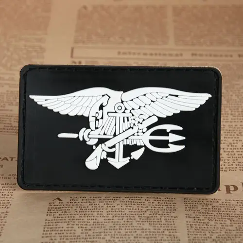 Parche Navy Seal PVC Patches is one of the military PVC patches in black and white style. Parche Navy Seal PVC Patches is about 3 inches long, 2 inches wide, and the size is very suitable for uniforms and hats. In the middle of Parche Navy Seal PVC Patches is a white logo, which is a symbol of Navy Seal.