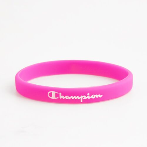 These charming bright pink wristbands were debossed a word” Champion”, with white color filled. So we call them “Champion Wristbands” accordingly.