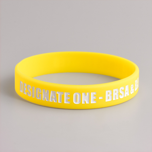 Come to these yellow rubber wristbands custom cheap, the main topic “DESIGNATE ONE-BRSA & BANKS HOLDINGS LIMITED” was debossed on them with white color filled that makes the topic eye-catching. Based on the topic and the simplicity, we name them DESIGNATE ONE Simply Wristbands.