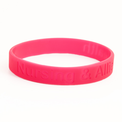 The National Association of Orthopaedic Nurses (NAON) and National Association of Orthopaedic Technologists have cooperated to develop the Nursing and Allied Health Plans, and will hold a conference for this plan in Las Vegas, Nevada during March 12th to 16th, 2019. This batch of custom silicone wristbands are made for promoting this plans to people, we named them as Nursing and Allied Health wristbands, we can find the title of the plan “Nursing & Allied Health” was debossed on them without color filled, looked concise and generous. Nursing and Allied Health wristbands also can tell people that the medical profession has been working tirelessly for human health, except that, Nursing and Allied Health wristbands can convey a kind of positive attitude to people in their life. GSJJ undertakes the production of many kinds of cheap rubber wristbands for various groups and collectives, we can provide them with reasonable price and guaranteed quality.