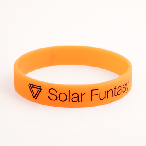 Obviously, Solar Funtasy Wristbands are made for advocating energy conservation and environmental protection. Energy conservation and environmental protection are to save or reduce existing energy consumption, protect resources, reduce environmental pollution, and promote the development of new energy resources to benefit the society. Solar energy is an environmentally friendly new energy source, so the "solar Funtasy" and recycling logo”an inverted triangle” are printed by black ink on these orange Solar Funtasy Wristbands, which can be used in any large events to remind people to save energy and make the meaning of the Solar Funtasy Wristbands more clear. We can find that simply wristbands can be surprisingly convey many informations,more importantly, cheap rubber wristbands are known for being environmentally friendly, so they're perfect for this theme. Most importantly is that everyone who wants to order custom silicone wristbands can get them from GSJJ with low price and high quality.