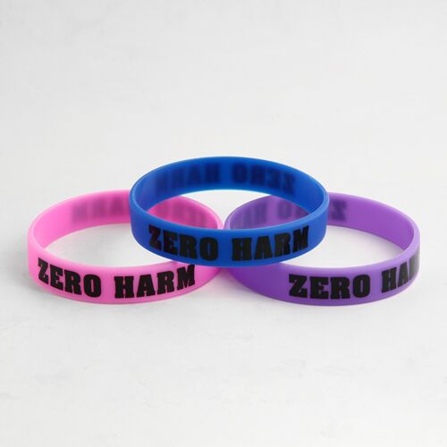 Strictly speaking, these ZERO HARM Printed wristbands Cheap are the third batch of bracelets made for the subject of “ZERO HARM”. The difference is the first two batches are handled with debossed technology, but the printed craft is used to this batch.