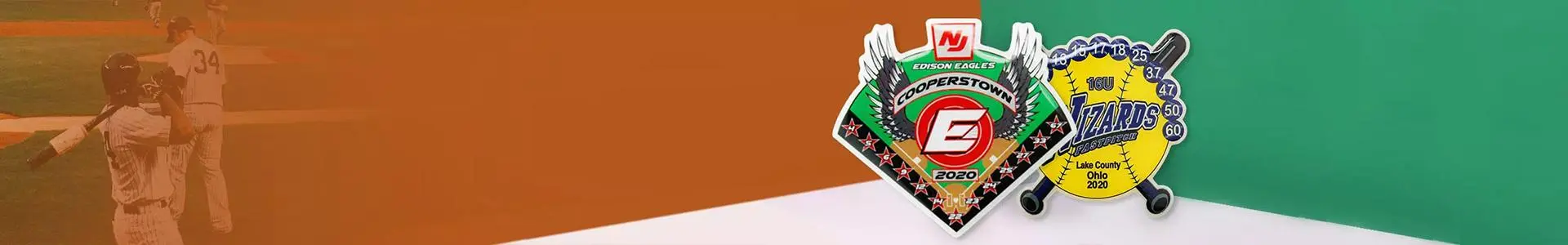 Offset printed pins are gaining in popularity among baseball teams because of the amount of detail for the cost. Recent advances in printing techniques now making these pins the ideal choice for the detailed designs and the complex coloring such as gradient or gradual color changes.